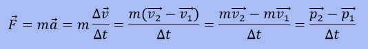 پس نیروی وارد بر جسم برابر تغییرات تکانه بر زمان است: