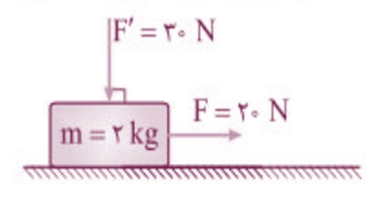 2)در شکل زیر به جسمی که در سطح افقی در حال سکون بوده نیرو هایی مطابق شکل اعمال می شوند.اگر ضریب اصطکاک ایستایی و جنبشی بین جسم و سطح افقی 0/5 و 0/3 باشد تغییر تکانه جسم در مدت دو ثانیه چند کیلوگرم متر بر ثانیه است؟