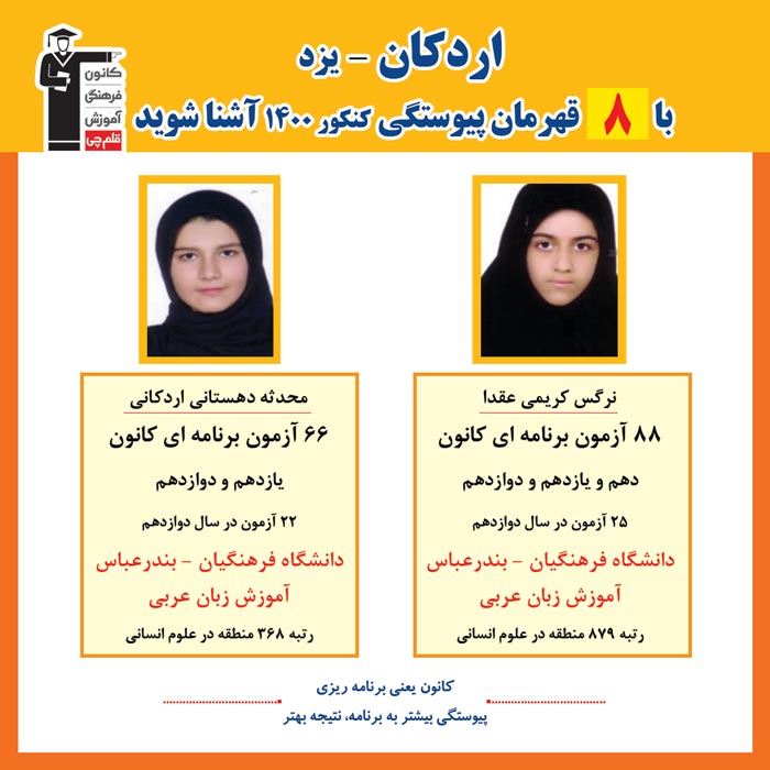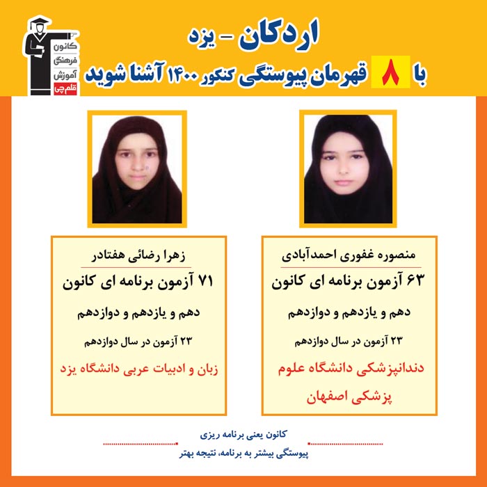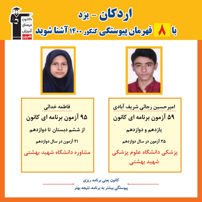 با 8 نفر قهرمانان پیوستگی اردکان در کنکور 1400 آشنا شوید