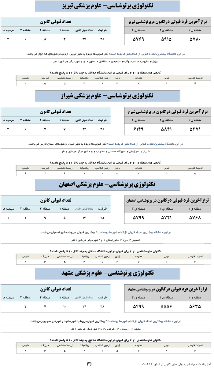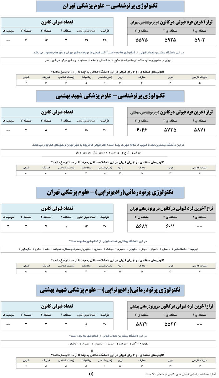 در جدول زیر تراز آخرین فرد قبول شده کانونی در رشته رادیولوژی در دانشگاه های برتر تهران و کلان شهر ها ارائه شده است.