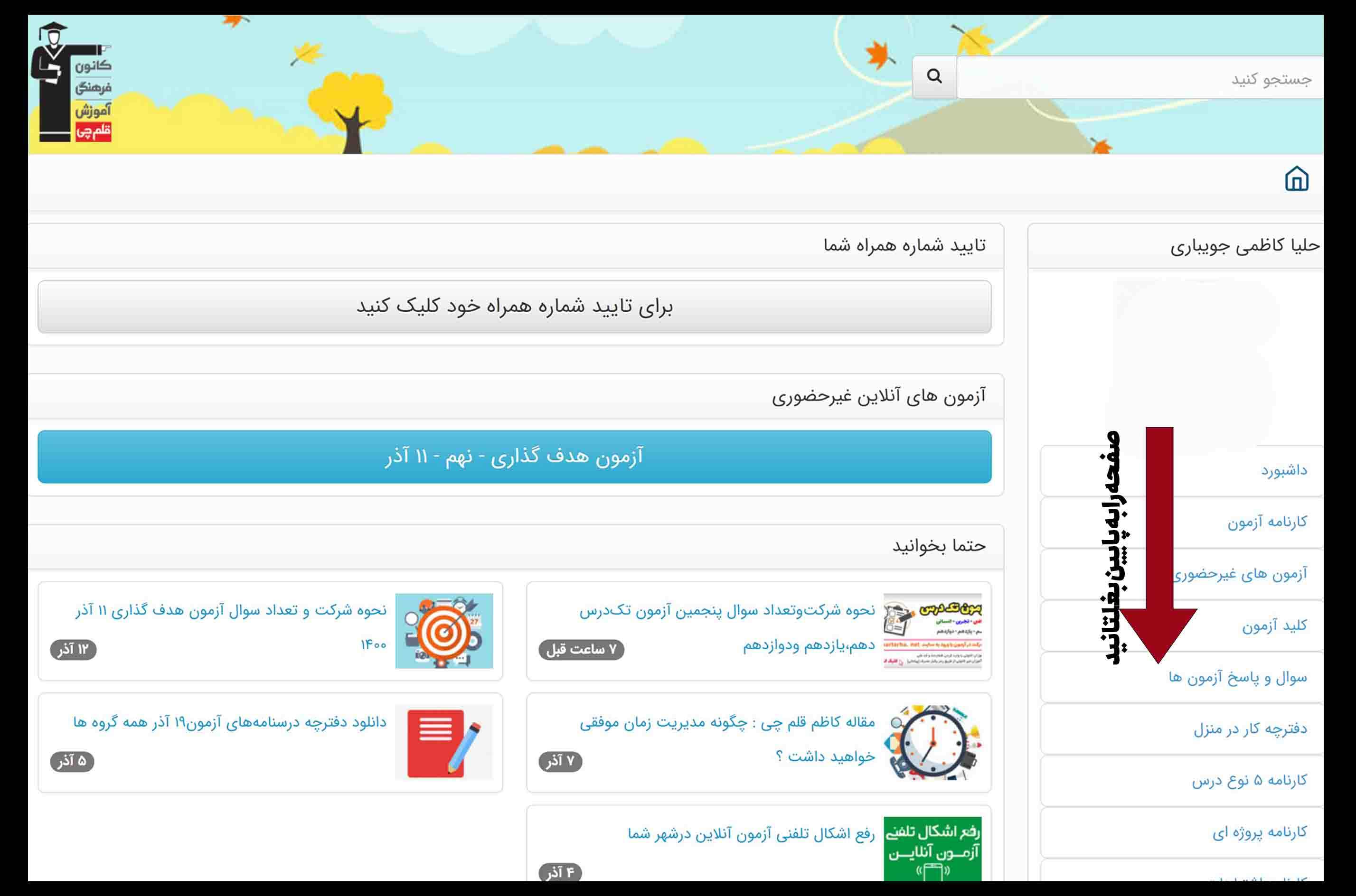 اگر در سوالی از آزمون خود ابهام یا اشکال دارید یا فکر می کنید آن سوال اشکال دارد یا غلط است، در صفحه شخصی خود سوال مورد نظر را با ذکر دقیق آدرس سوال (تاریخ آزمون - پایه تحصیلی - شماره سوال) اعلام کنید تا توسط رتبه های برتر کانون قلم چی بررسی شود.