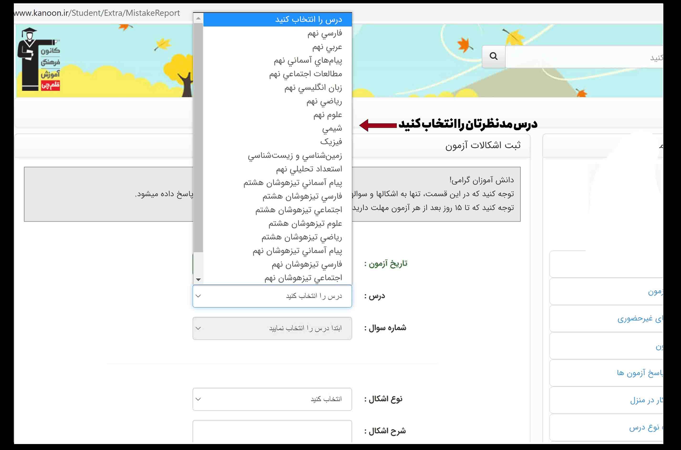 در مطلب زیر چگونگی اعلام اشکالات توسط دانش آموزان در صفحه شخصی آموزش داده شده است.