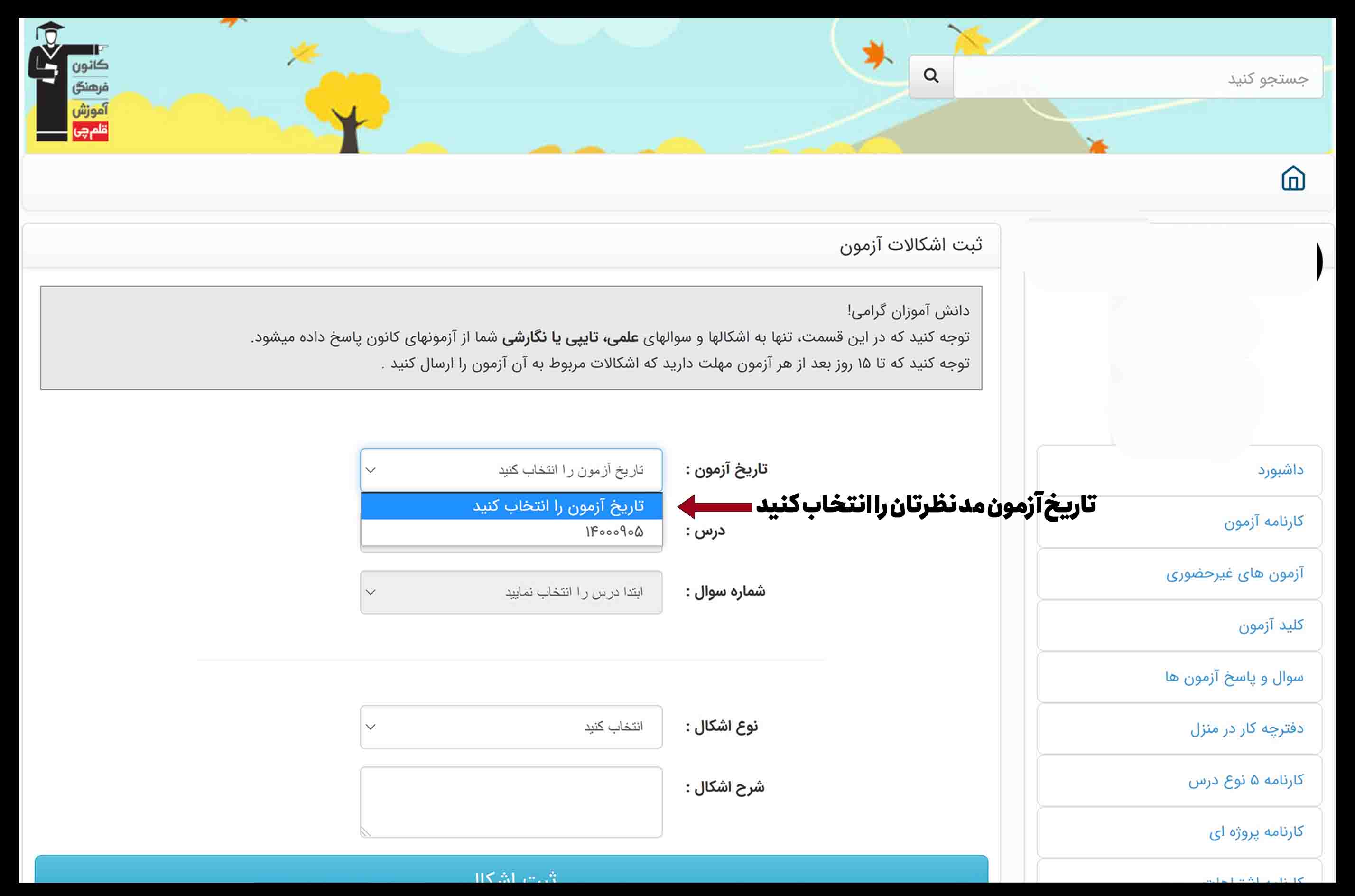 مدیر اشکالات پس از برگزاری آزمون های کانون