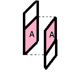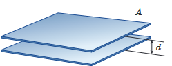 شکل زیر آرایش خازنی موسوم به خازن تخت را نشان می دهد که شامل دو صفحه رسانا با مساحت A است که با فاصله d (که در برابر ابعاد صفحه ها ناچیز است) از هم قرار گرفته اند.