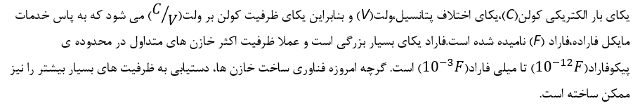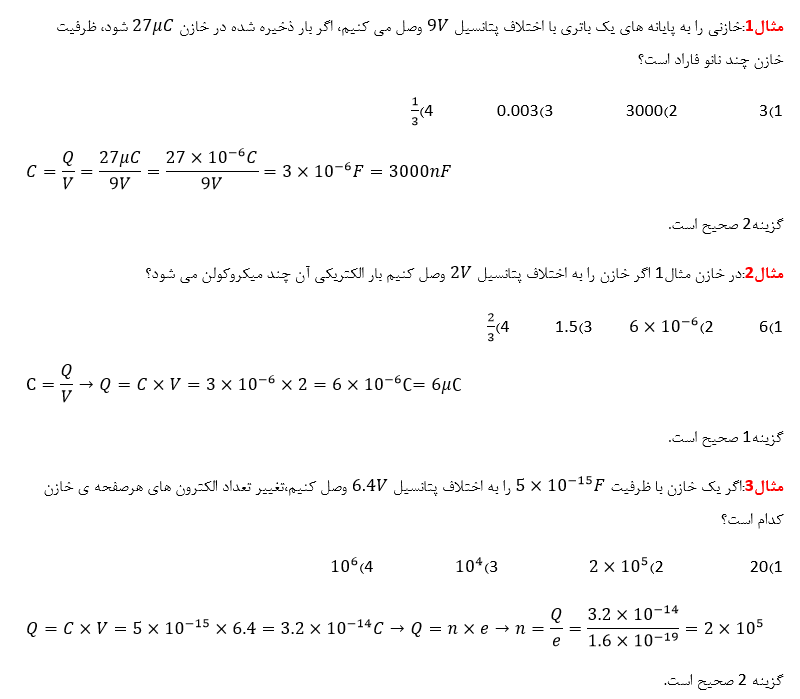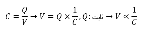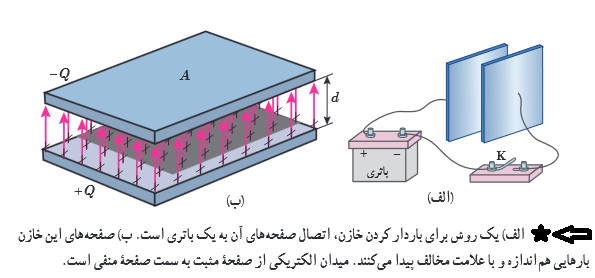 نکته:ظرفیت خازن به اندازه بار خازن و نیز اختلاف پتانسیل دو صفحه آن بستگی ندارد.