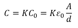 حال اگر فضای بین صفحه های این خازن را با یک دی الکتریک با ثابت دی الکتریک K کاملا پر کنیم، برای ظرفیت خازن جدید داریم:
