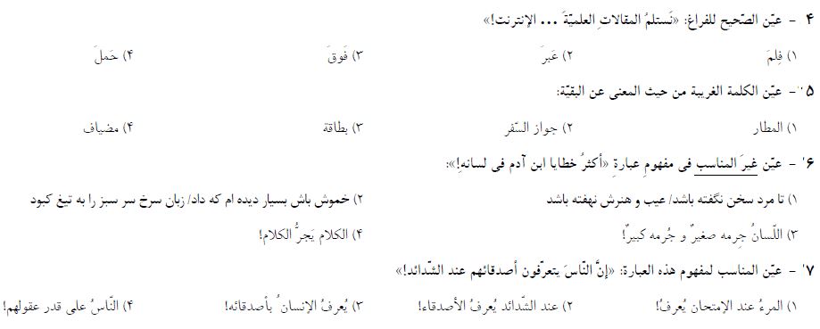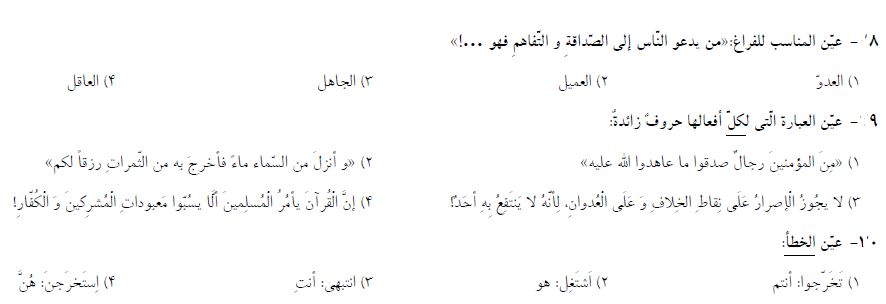 10 سوال عربی دهم که در ادامه برای شما قرار دادیم، از مباحث آزمون 3 دی بوده و برای آمادگی بیشتر شما در این آزمون توسط فاطمه احدزاده رتبه 373 رشته ریاضی سال 95 انتخاب و برای شما قرار داده شده است. بعد از مطالعه ی کتاب درسی و درسنامه های آمادگی آزمون 3 دی، توصیه میکنم حتما این سوالات را حل کرده و جواب های خود را با پاسخنامه بررسی کنید.