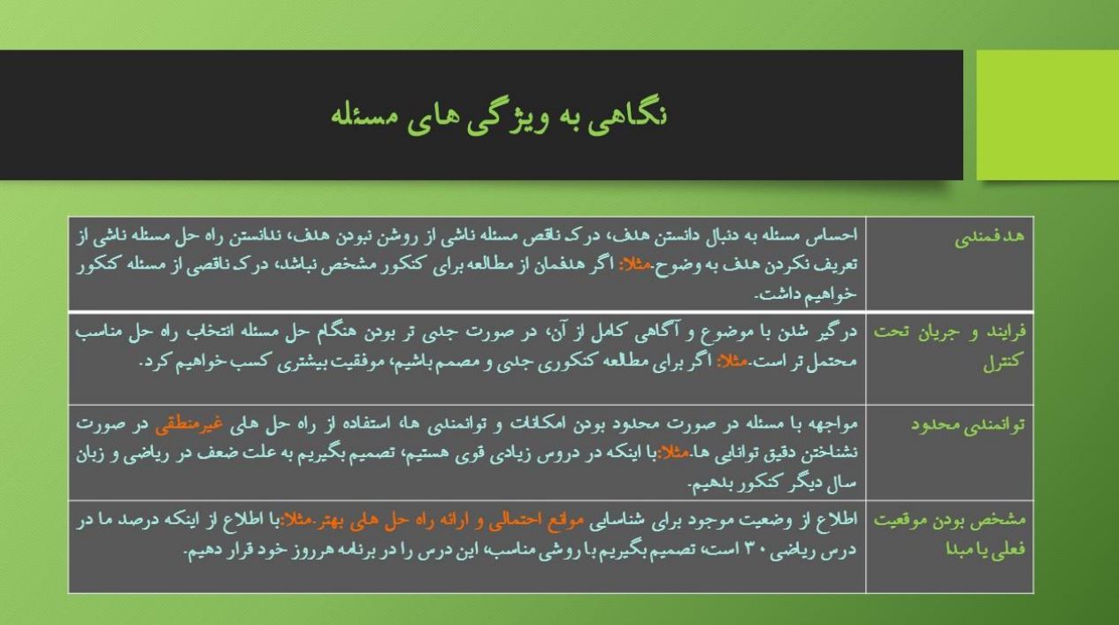 4. تشخیص دقیق مسئله اولین گام حل آن است.