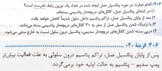 فعالیت بیشتر پمپ سدیم- پتاسیم موجب می شود غلظت یون های سدیم و پتاسیم در دوسوی غشا دوباره به حالت آرامش برگردد.