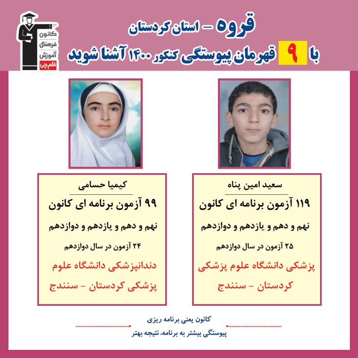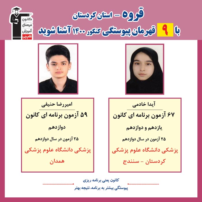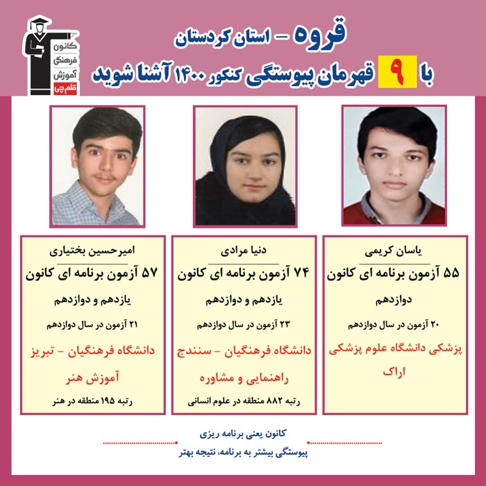 با 9 نفر قهرمانان پیوستگی قروه در کنکور 1400 آشنا شوید