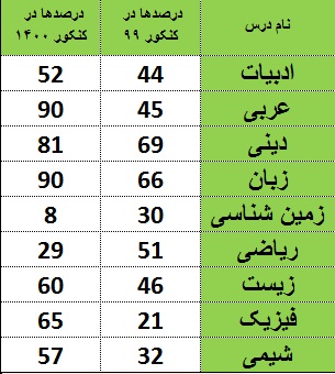 سال اول کنکور من (99) کرونا آمد و مدارس تعطیل شد و آموزش هم مجازی شد. من هم از زمان مجازی شدن کلاس ها و آزمون ها یعنی حدود شش ماه درس نخواندم و خب نتیجه هم مشخص بود.