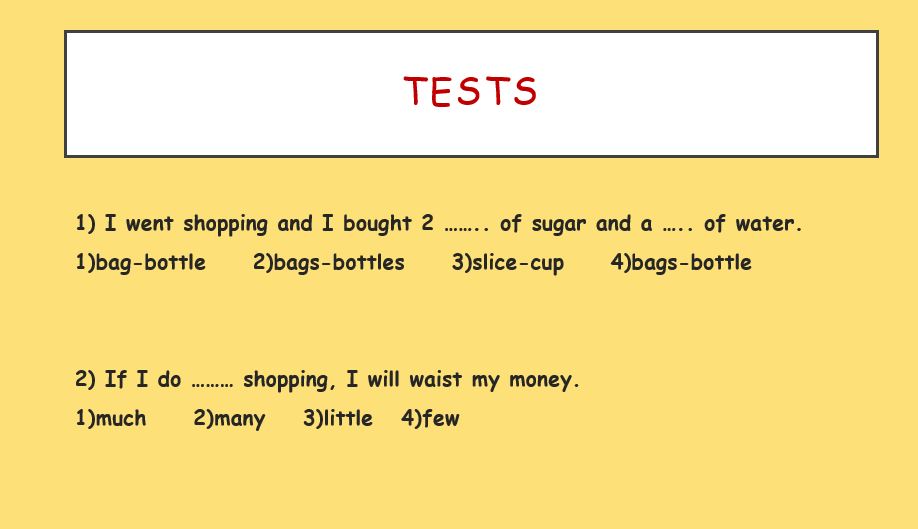 مثلا : .I bought 2 bags of sugar yesterday