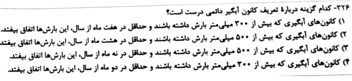 گزینه1) بیشتر بارش ها از اواخر فصل پاییز تا اوایل فصل بهار رخ می دهد.