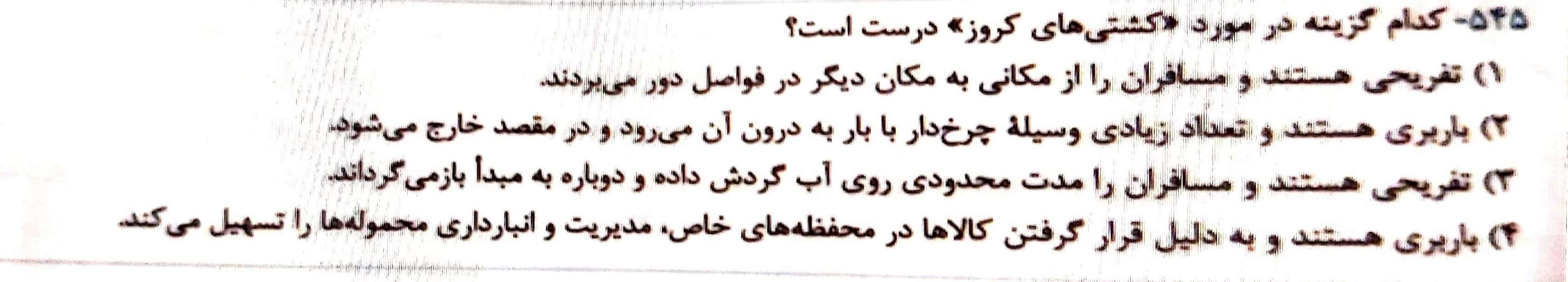 گزینه1) کشتی های مسافربری اقیانوس پیما(این کشتی ها تفریحی نیستند.)