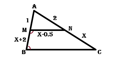 در شکل زیر دو زاویه ABC و NMB مکمل هستند. طول BC کدام است؟ 1)2.7 2)3.5 3)4 4)4.5