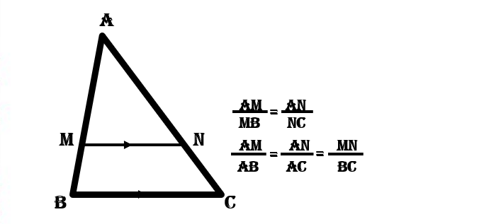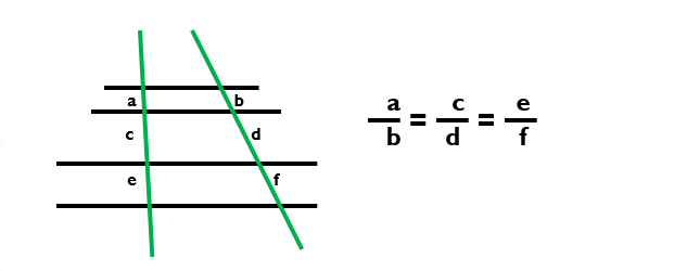 اگر خط راستی موازی یکی از اضلاع مثلثی، دو ضلع دیگر (یا امتداد آنها) را در دو نقطه قطع کند، مثلثی با آنها تشکیل می دهدکه با مثلث اصلی متشابه است.