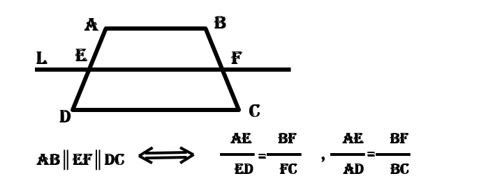 قضیه تالس در ذوزنقه به صورت زیر بیان می شود: