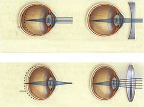 ب.در افراد دوربین، به دلیل کوچکتر بودن کره چشم نسبت به حالت عادی: