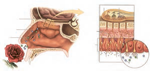 6.هسته یاخته های استوانه ای نزدیکتر به حفره بینی، هسته یاخته های کوچک در قاعده مخاط و هسته گیرنده بویایی در میانه مخاط است.