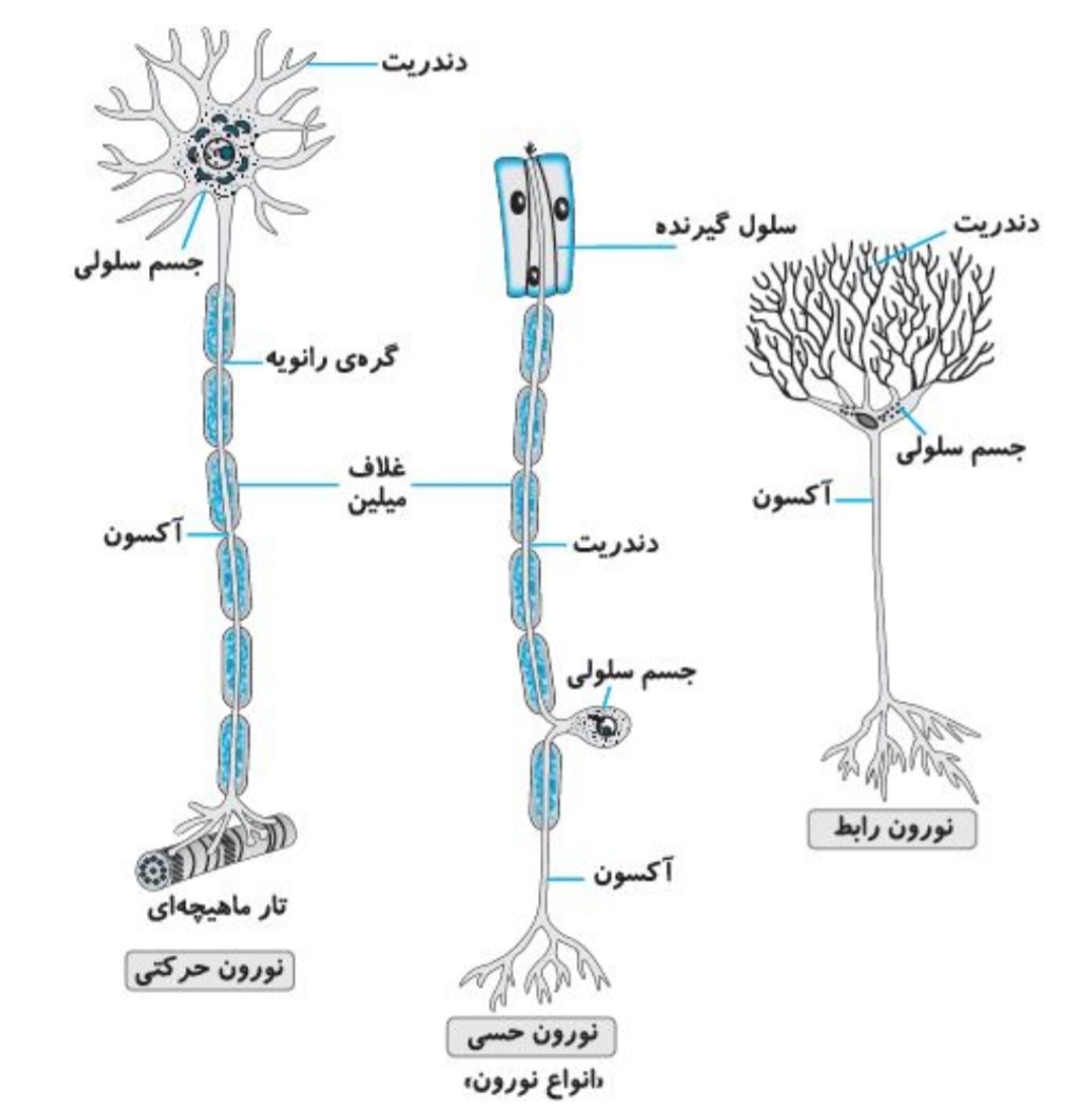 هر سه نوع یاخته عصبی می توانند میلین دار یا بدون میلین باشند.
