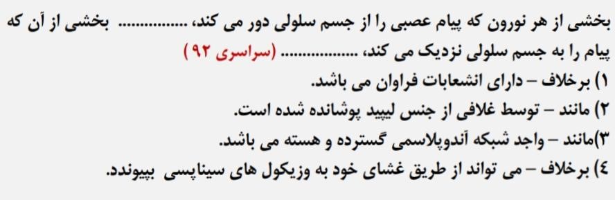 سرعت هدایت پیام عصبی ارتباط مستقیم با قطر نورون و وجود میلین دارد.