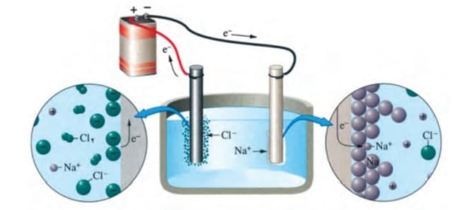 214: فلز سدیم یك كاهنده قوی است كه در طبیعت به حالت آزاد یافت نمیشود، عنصری كه در تركیبهای طبیعی و گوناگون خود تنها به شكل یون سدیم وجود دارد. این واقعیت نشان میدهد كه یونهای سدیم بسیار پایدارتر از اتمهای آن هستند. به همنی دلیل برای تهیه فلز سدیم باید انرژی زیادی مصرف كرد. شكل زیرتهیه این فلز را از برقكافت سدیم كلرید مذاب در یك سلول الكترولیتی نشان میدهد: