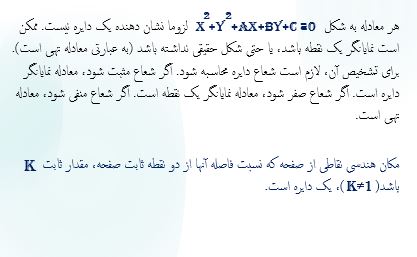 1) مکان هندسی نقاطی از صفحه که از یک نقطه ثابت به یک فاصله ثابت باشند، یک دایره است.