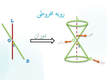 اگر در شرایطی که a مخالف صفر و خط L ثابت است، خط D در فضا دوران داده شود، یک رویه مخروطی ایجاد می شود. این رویه از هر دو طرف نامتناهی است.