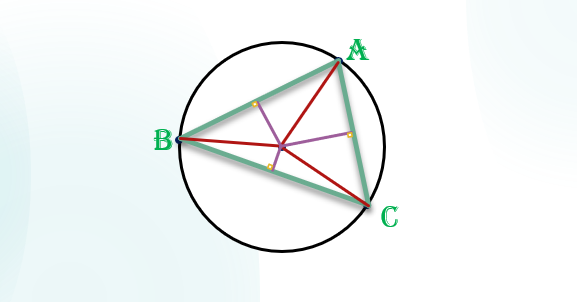5) مکان هندسی نقاطی از صفحه که از سه نقطه غیر واقع بر یک خط راست به یک فاصله باشند، یک نقطه است. بدین معنا که فقط یک نقطه با این ویژگی وجود دارد. این نقطه، همان محل برخورد عمود منصف های اضلاع مثلث یا مرکز دایره محیطی مثلث است.