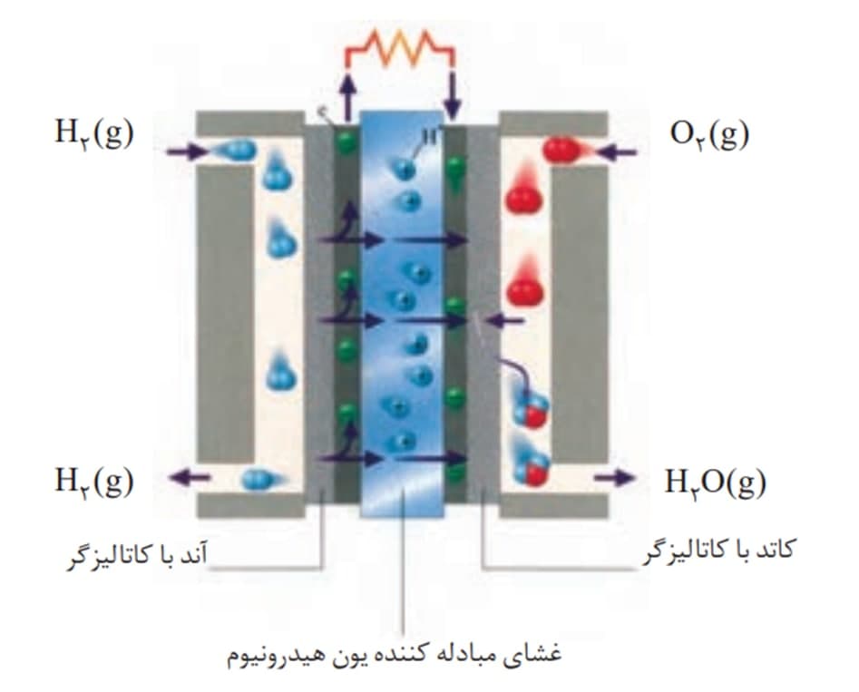 1-مولکول های هیدروژن وارد سلول سوختی می شوند