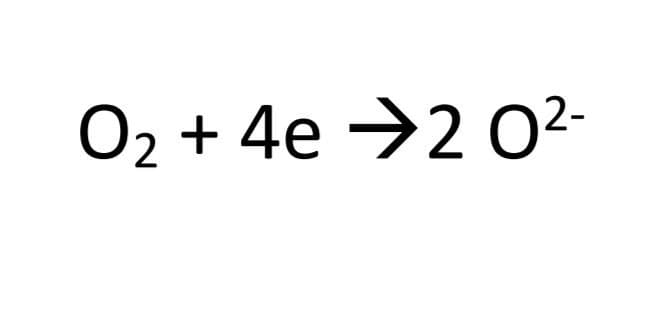 4-در کاتد مولکول های لکسیژن الکترون ها را می گیرند و کاهش می یابند: