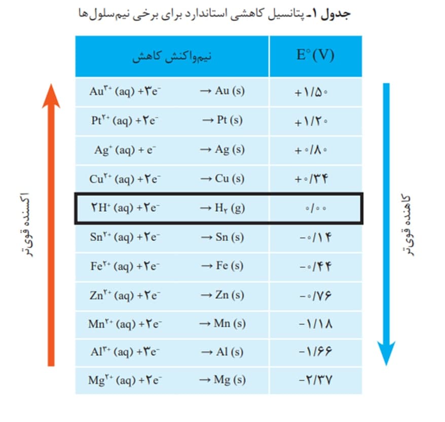 هر چه پتانسیل عنصری پایین تر باشد تمایل بیشتری به از دست دادن الکترون دارد در نتیجه اتم های آن راحت تر الکترون از دست می دهند و ← اتم های آن راحت تر اکسایش می یابند ← کاهنده ی قوی تری است.