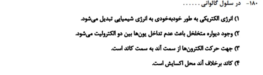 گزینه 1-در سلول گالوانی انرژی شیمیایی به الکتریکی تبدیل می شود.گ
