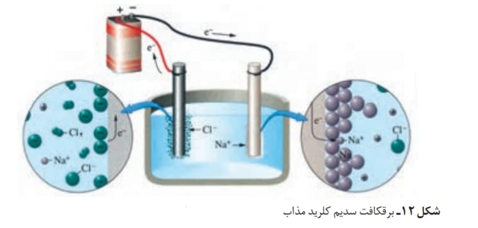 2-یون های کلرید در آند اکسایش می یابند و گاز کلر تولید می شود