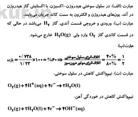 پس واکنش کلی سلول سوختی را می توان به شکل زیر نوشت: