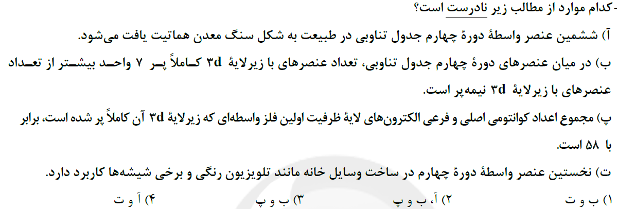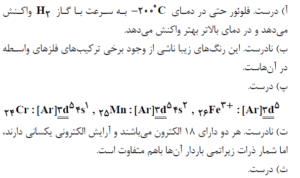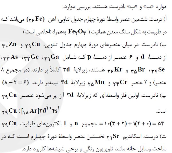 توجه کنید که فلز مس و روی زیرلایه 3d شان ده الکترون و فلزات کروم و منگنز پنج الکترون دارد.