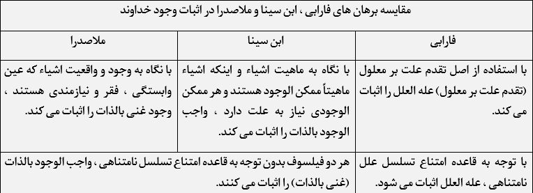 برهان های اثبات وجود خدا نزد فیلسوفان مسلمان: |