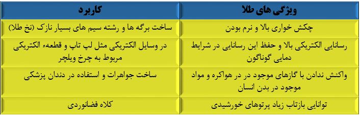 طلا  79Au فلزی ارزشمند و گران از دسته ی d جدول دوره ای است که علاوه بر علاوه بر ویژگی های مشترک فلزها، ویژگی های منحصر به فردی دارد.
