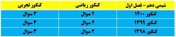 بودجه بندی فصل اول شیمی 1 در کنکور سال های اخیر
