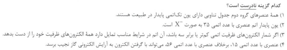 1- آرایش الکترونی ns2 np6 می توانند مربوط به اتم گاز نجیب، یک کاتیون پایدار و یا یک آنیون پایدار باشد.