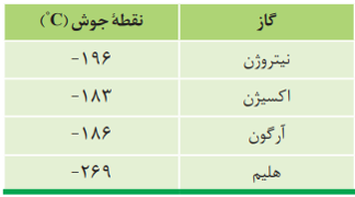 1- بخش عمده هواکره را به ترتیب گازهای نیتروژن و اکسیژن تشکیل میدهد. گاز آرگون در میان اجزای هواکره رتبه سوم را دارد. در صنعت این سه گاز را از تقطیر جزء به جزء هوای مایع تهیه می کنند.