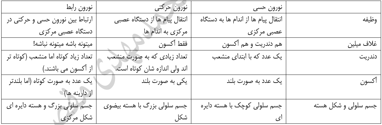*همه این نورون ها میتونن دارای میلین باشند یا نباشند!شکل های کتاب صرفا نمونه ای از یاخته های عصبی هستند.