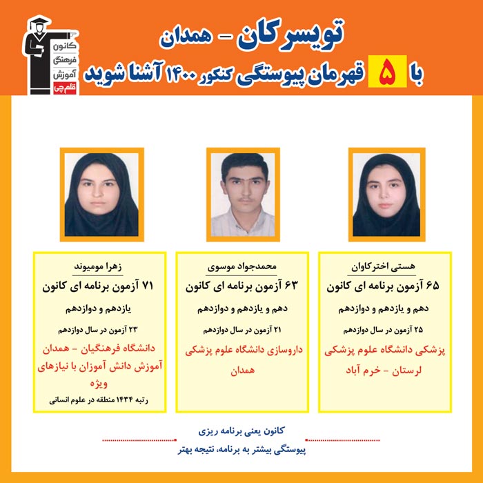 با 5 نفر قهرمانان پیوستگی تویسرکان در کنکور 1400 آشنا شوید
