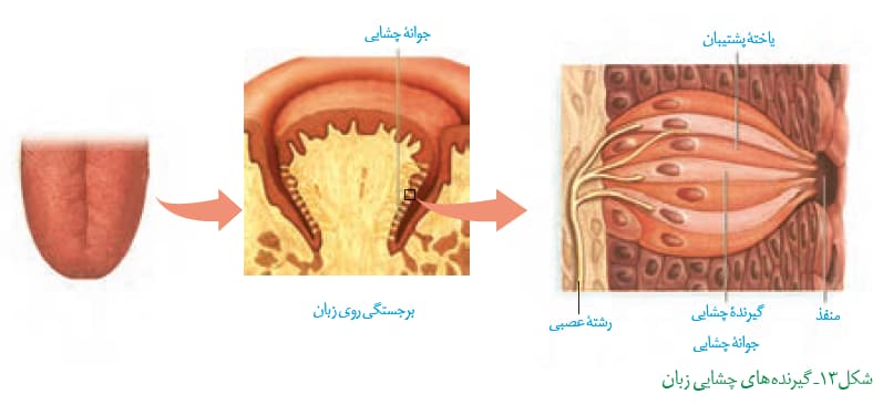 *درون جوانه های چشایی، یاخته گیرنده چشایی و یاخته پشتیبان به صورت یک در میان قرار گرفته اند...