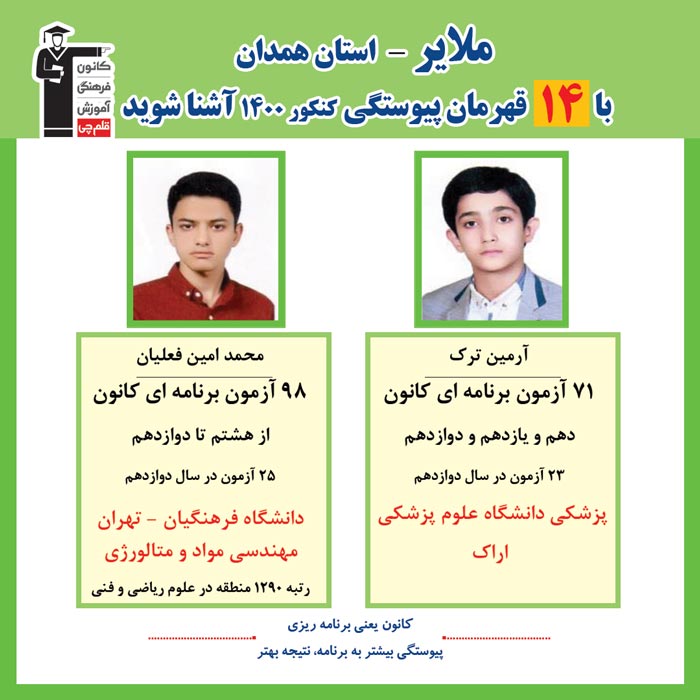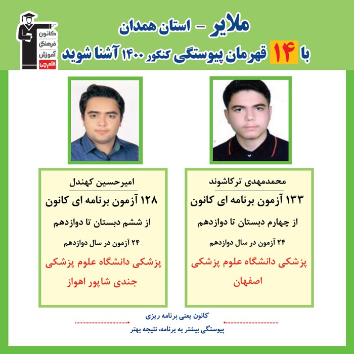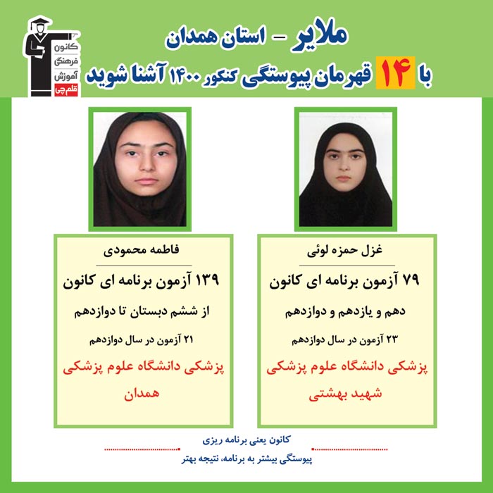 با 14 نفر قهرمانان پیوستگی ملایر در کنکور 1400 آشنا شوید