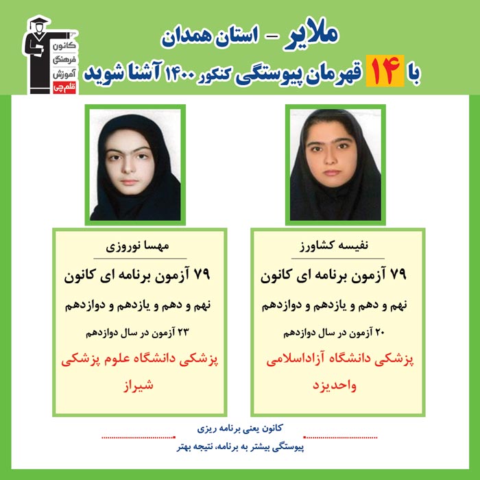 با قهرمانان پیوستگی شهر ملایر در کنکور 1400 آشنا شوید