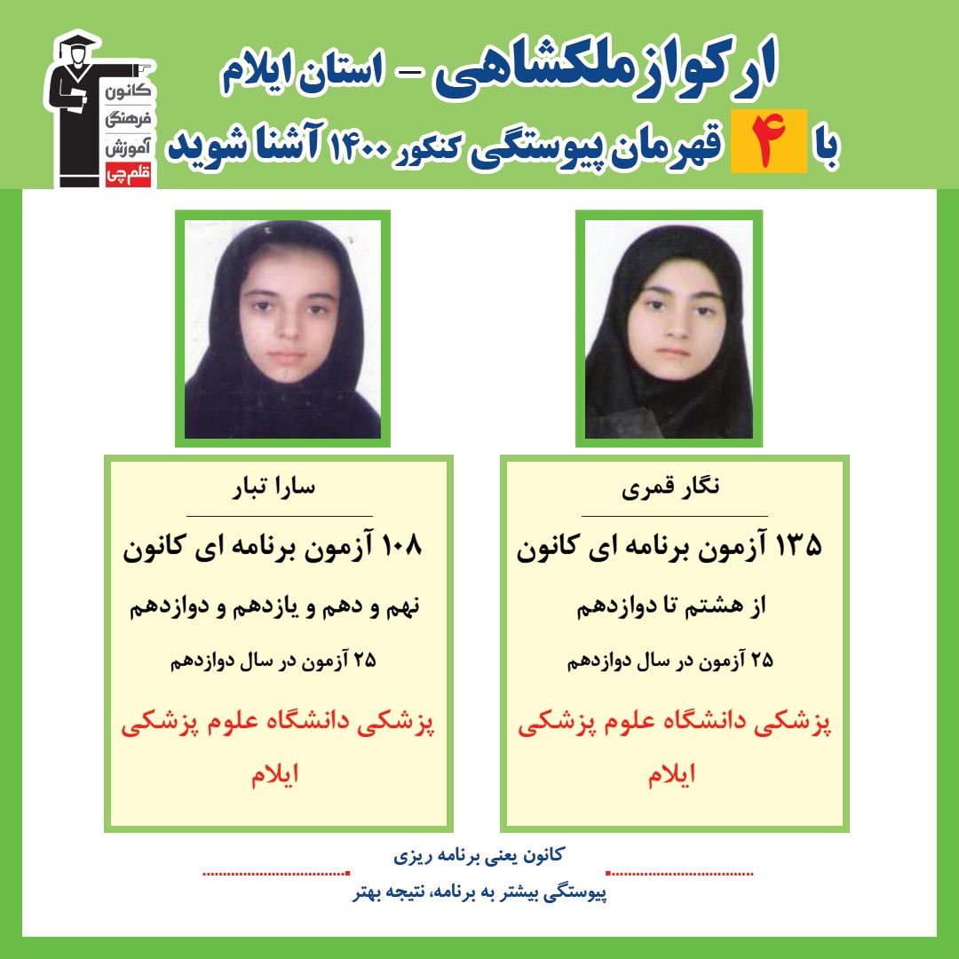 با قهرمانان پیوستگی ارکوازملکشاهی درکنکور1400آشناشوید
