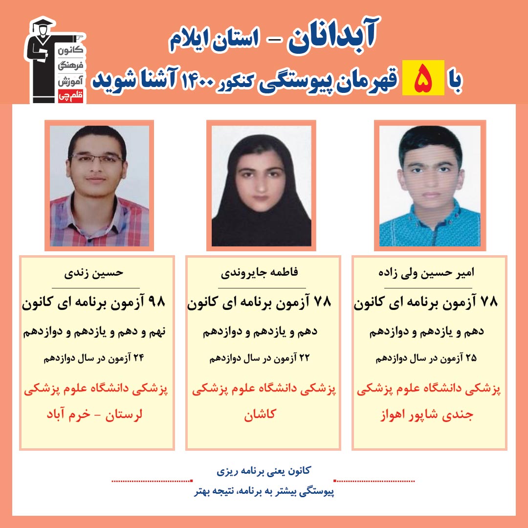با قهرمانان پیوستگی آبدانان درکنکور 1400 آشنا شوید
