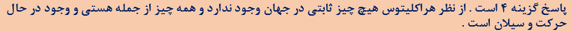 2-کدام عبارت با عقاید هراکلیتوس سازگار نیست ؟
