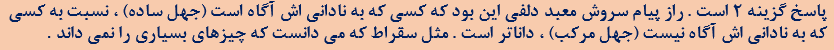 3)دانای حقیقی فقط خداست و بقیه نادان هستند . 4)مدعیان دانایی لزوماً دانا هستند .